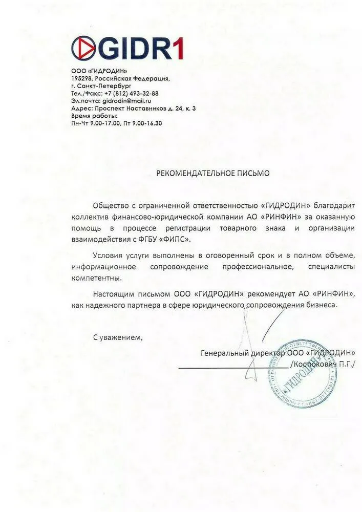 Уверенно рекомендуем компанию АО «РИНФИН» как лучшего партнера в сфере юридического обеспечения деятельности бизнеса, с которым нам довелось работать в Российской Федерации, и желаем Вам крепкого здоровья, успешного развития бизнеса и самых лояльных заказчиков.